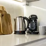 - ❓¿Hay una cocina disponible en el apartamento para uso de los huéspedes?Sí, el apartamento está equipado con una cocina completa y ofrece también un horno de microondas, un hervidor eléctrico y cafetera/tetera.
